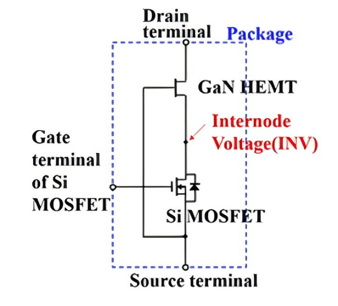 Cascode结构是由高压耗尽型GaN HEMT和低压增强型Si MOSHEMT(金属氧化物半导体场效应晶体管)级联构成的,如图5所示。